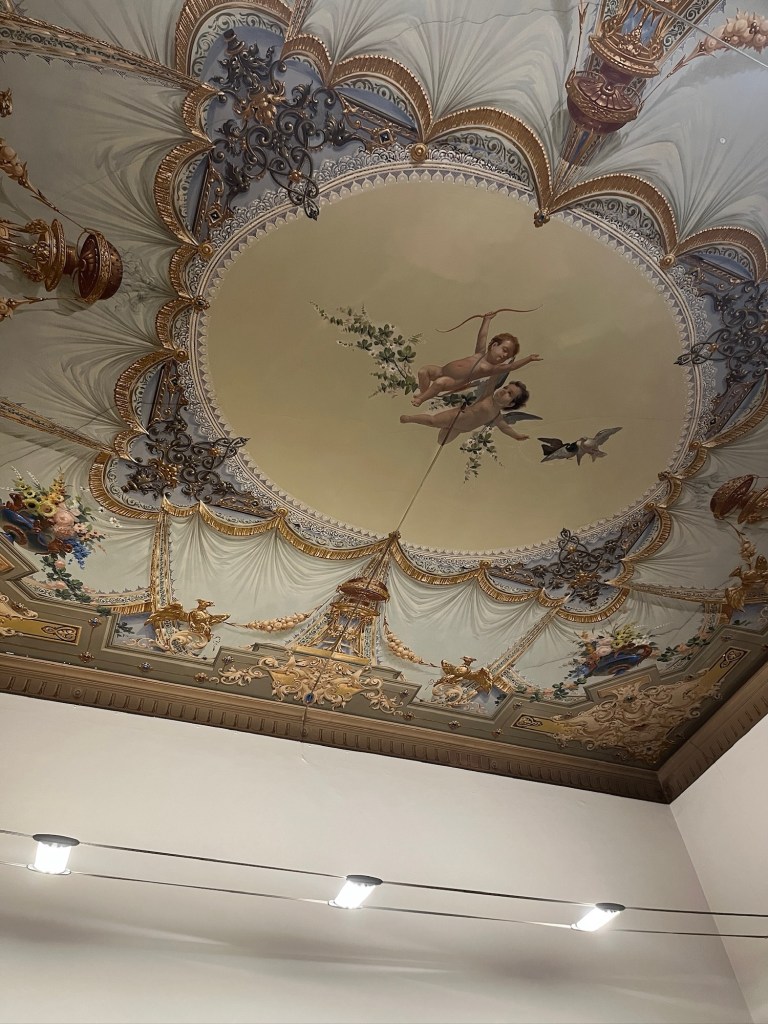 We are in a new classroom that has a painted ceiling. Never been in a classroom with putti looking down on me.