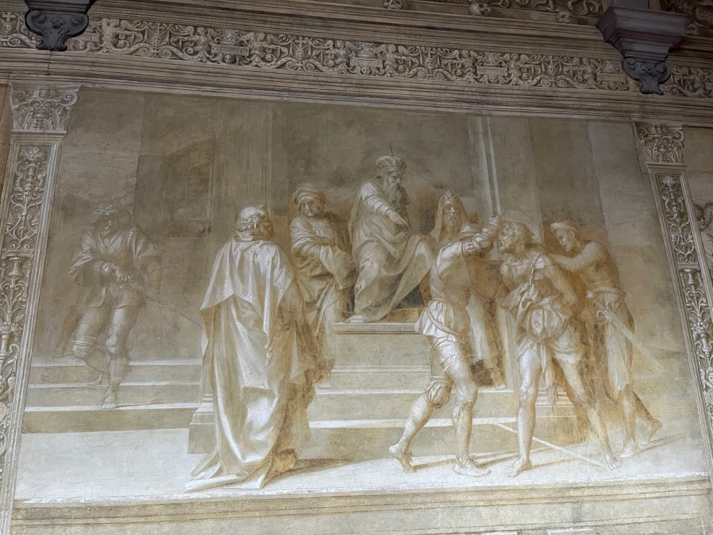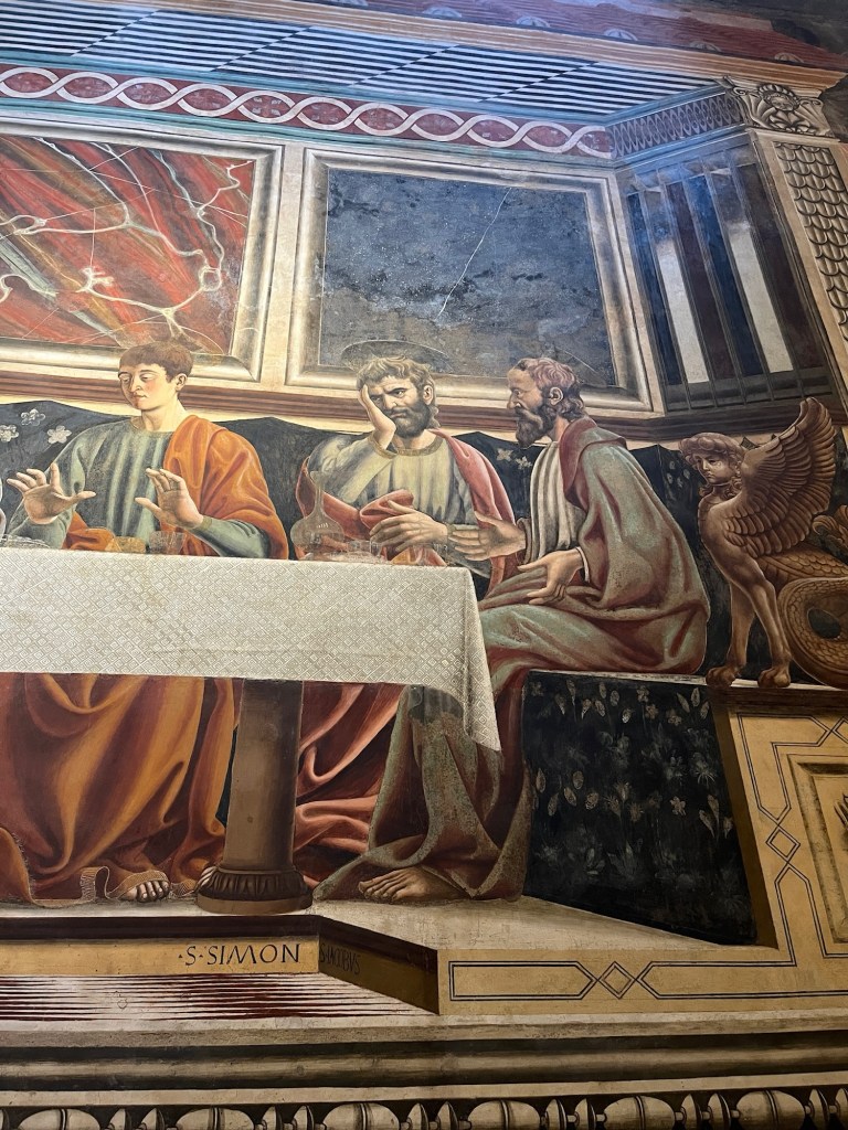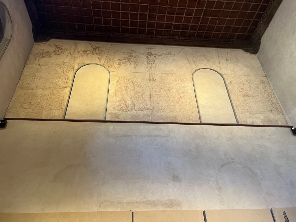 The fresco had been removed from the wall for conservation and the sinopia (the under painting which outlines the work) for the upper part of the fresco is now shown separately on the opposite wall.