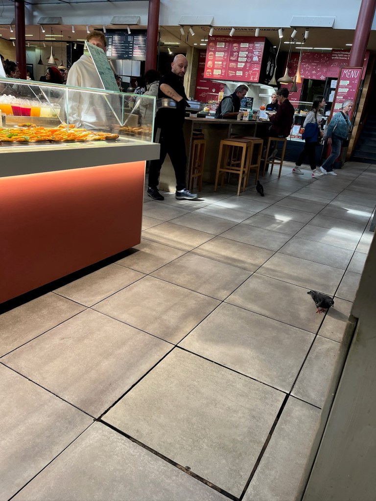 But the upper level, which is more like a food court, was busy as even pigeons were starting to look for lunch.